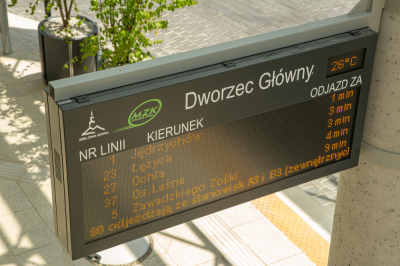 3. | Zadanie Nr 3 | System Informacji Pasażerskiej - MZK (zadanie podstawowe) | Zadanie obejmuje: wymianę dotychczas funkcjonujących tablic informacyjnych (15 tablic), instalację nowych tablic informacji pasażerskiej (29 tablic), wdrożenie nowoczesnego systemu zarządzania treścią i komunikatami na tablicach, który umożliwi centralne sterowanie, aktualizację rozkładów jazdy, komunikatów o opóźnieniach oraz treści dynamicznych (np. informacje o objazdach czy awariach). Modernizacja SIP znacząco wpłynie na komfort podróży pasażerów, zwiększy dostępność informacji w czasie rzeczywistym oraz poprawi ogólną efektywność systemu transportu publicznego. | 01.01.2026 | 31.12.2026 |